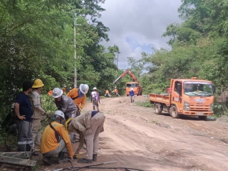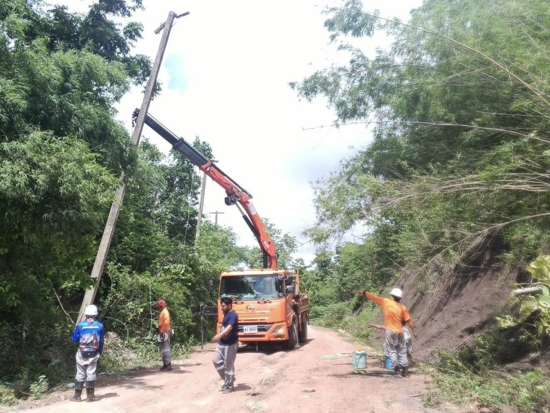 แก้ไขติดตั้งเสาไฟฟ้าล้มเมื่อวาน ขณะนี้ติดตั้งได้ 70%แล้ว คาดว่าจะเสร็จสมบูรณ์ ภายในวันนี้